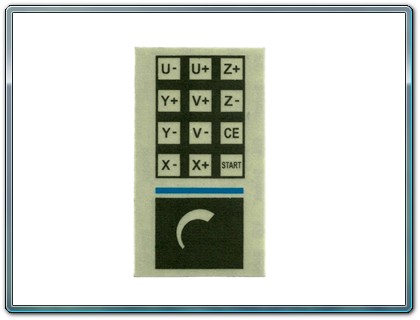 Membrana do controle remoto da máquina de eletroerosão por corte a fio Engemaq EWC 5000. Dimensões (Largura x Altura) 77 x 140 mm.